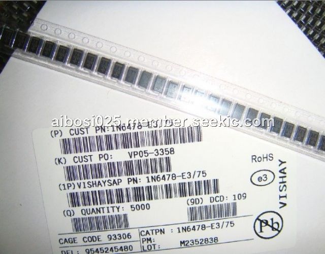 1N6478-E375 features: (1)Plastic package has Underwriters Laboratory Flammability Classification 94V-0; (2)For surface mount applications; (3)High temperature metallurgically bonded construction; (4)Glass passivated cavity-free junction; (5)Capable of meeting environmental standards of MIL-S-19500; (6)High temperature soldering guaranteed: 450℃/5 seconds at terminals.